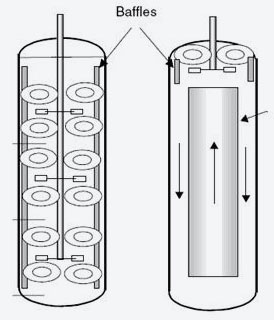 對于容器較高的液液分散,可能還需要多層攪拌器,或者在加上部擋板以及導(dǎo)流筒等。如圖所示: