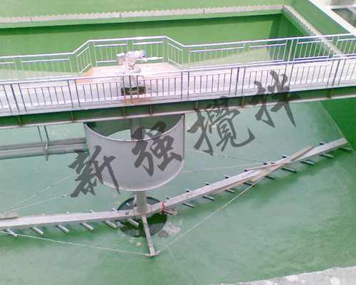 中心傳動刮吸泥機(jī)采用中心傳動,污水從進(jìn)水管流入導(dǎo)流筒擴(kuò)散后,均勻的向周邊呈輻射狀流出,呈懸浮狀的污泥經(jīng)沉淀后沉積于池底,驅(qū)動裝置帶動中心豎架旋轉(zhuǎn),并帶動刮臂及刮泥板轉(zhuǎn)動,刮泥板將污泥刮集后由吸泥管靠池內(nèi)靜水壓抽吸至中心泥缸,再通過中心排泥管排出池外,水面上的浮渣通過旋轉(zhuǎn)撇渣裝置導(dǎo)入排渣斗內(nèi)排出池外;而上清液則通過三角形出水堰板溢入出水槽內(nèi)排出。我公司將會針對用戶不同工藝控制條件要求,做相應(yīng)的配套調(diào)整設(shè)計(jì),以確保泥漿沉降分離和洗滌效果,減少浪費(fèi),節(jié)約投資成本。