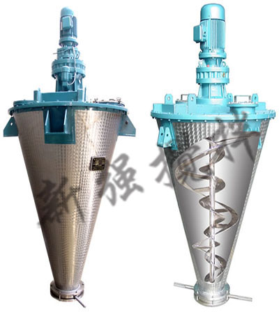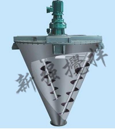 單錐雙螺旋錐形混合機(jī),它由傳動(dòng)部分、筒蓋、螺旋、筒體、出料閥等組成。