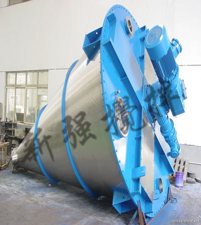 3. 螺旋部分:筒體內(nèi)兩只非對稱排列的螺旋作自、公轉(zhuǎn)行星運(yùn)動(dòng)時(shí),在較大范圍翻動(dòng)物料,使物料達(dá)到均勻混合。