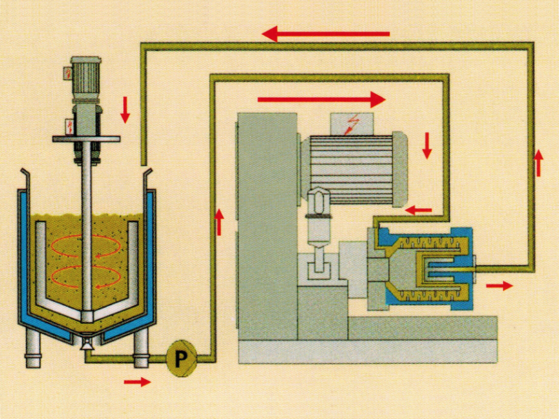 縮短漿料在磨腔內(nèi)的滯留時(shí)間,有效抑制溫度上升。通過(guò)循環(huán)冷卻水的冷卻,可實(shí)現(xiàn)低溫研磨。 |