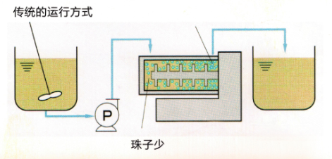 循環(huán)操作只需一個或兩個攪拌桶實現(xiàn)循環(huán)砂磨,而且攪拌桶內(nèi)粗顆粒會快速沉淀而優(yōu)科學(xué)入砂磨腔砂磨。